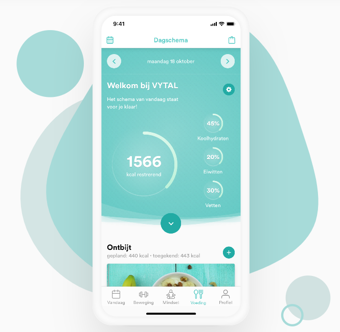 Met Vytal bieden wij persoonlijke begeleiding op het gebied van voeding. Of je nu wil afvallen, in balans wil blijven of meer spieren en vorm wil krijgen, het is allemaal mogelijk. Aan de hand van jouw persoonlijke voorkeuren maken we de voedingsschema’s op maat. De menu's bevatten gewoon 'normaal' eten, zodat het eetpatroon ook op de lange termijn goed vol te houden is. Ook het gezin kan mee eten. Met de persoonlijke app kan je de menu's gemakkelijk inzien en aanpassen. Daarnaast vind je er onder andere een wekelijkse boodschappenlijst, nieuwtjes en een caloriechecker. Iedere week heb je een evaluatiemoment met de coach waarin er ook gewogen wordt.